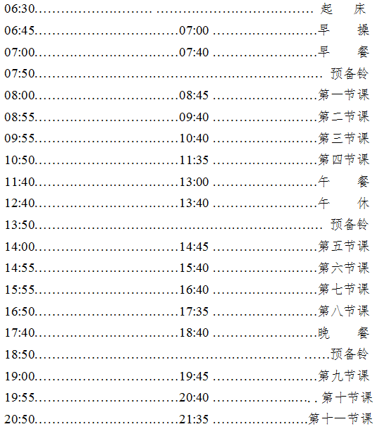 備注:1.學生課外活動和政治學習時間為周三下午,周三第六、七節課可適當安排教學活動。