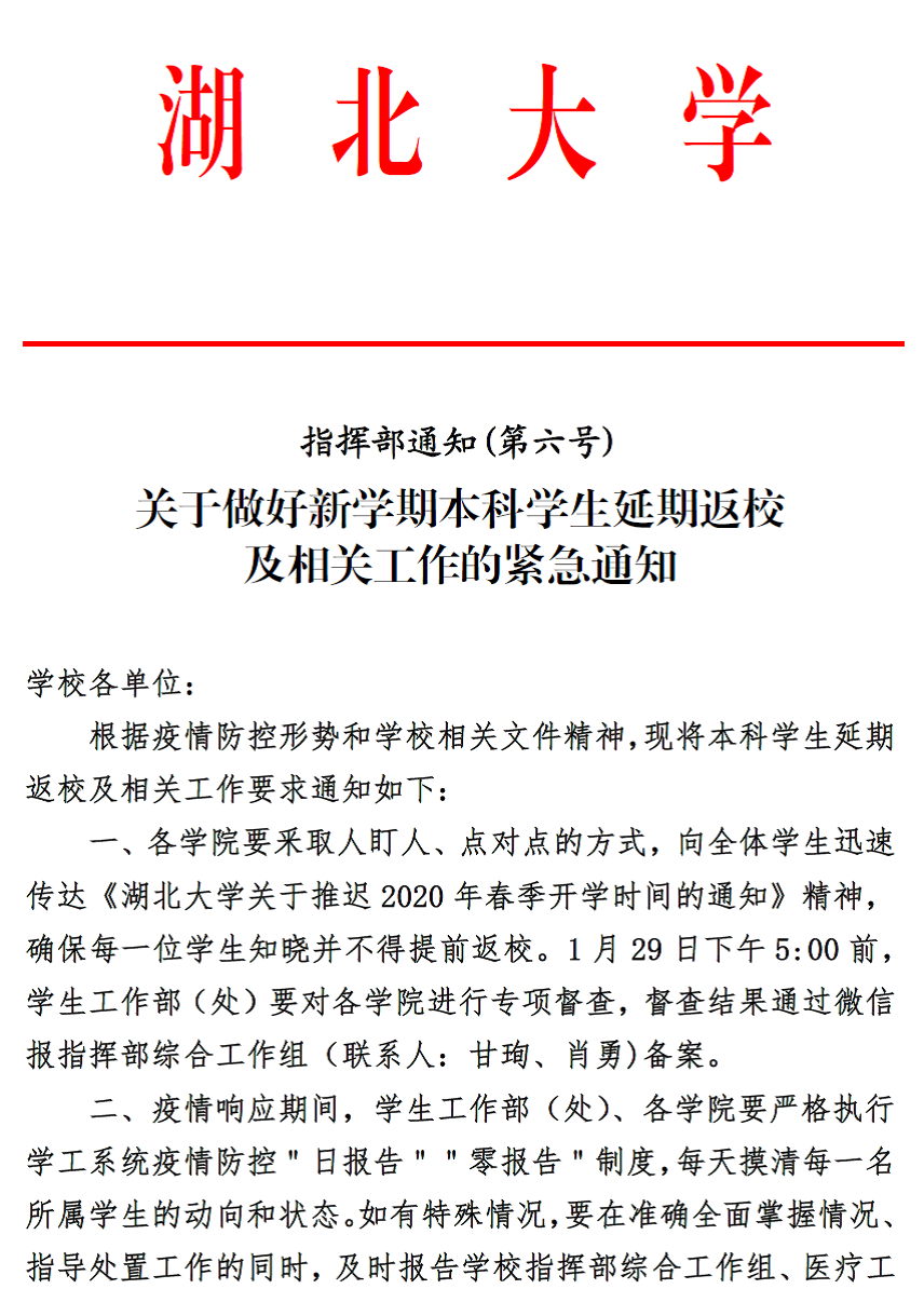 來源:湖北大學(xué)疫情防控指揮部 作者: 編輯:王義芳 時間:2020-01-28 字號: 【大】 【中】 【小】