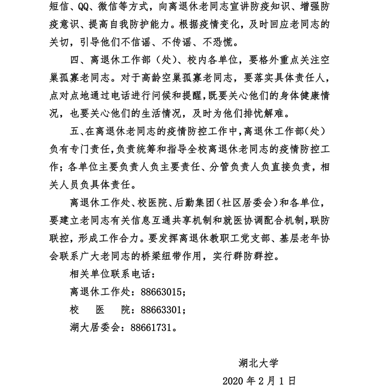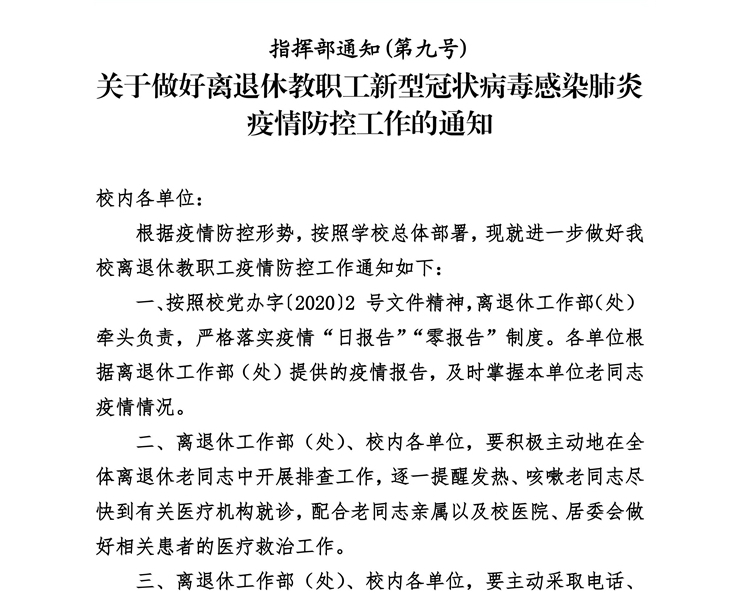 關于做好離退休教職工新型冠狀病毒感染肺炎疫情防控工作的通知(第9號)
