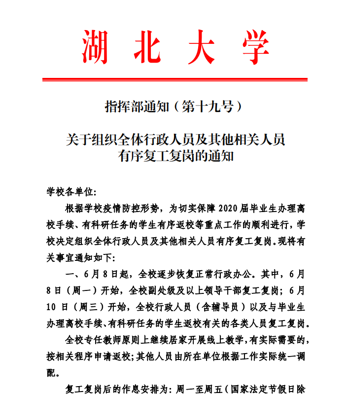 關于組織全體行政人員及其他相關人員有序復工復崗的通知(第19號)