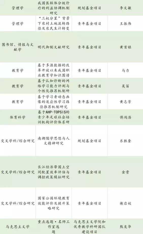 3月15日,教育部正式公布了2019年度教育部人文社會科學(xué)研究一般項目評審結(jié)果。湖北大學(xué)有26項獲批立項,排位全國高校第13位、湖北高校第3位,實現(xiàn)了湖北大學(xué)在該項目的歷史性突破。其中,獲批規(guī)劃基金項目8項,青年基金項目17項,高校示范馬克思主義學(xué)院和優(yōu)秀教學(xué)科研建設(shè)團(tuán)隊項目 1項。