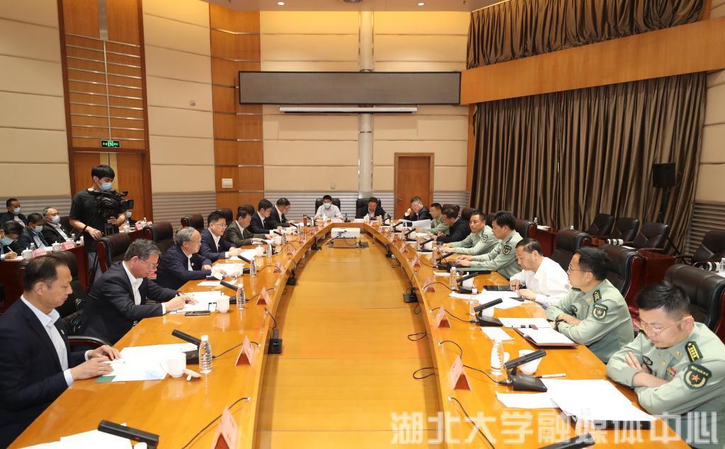 5月12日,省委常委、省軍區(qū)司令員周月星到湖北大學(xué)調(diào)研“雙一流”建設(shè)和國(guó)防教育工作。武漢市委常委、警備區(qū)司令員袁野,省軍區(qū)、省委軍民融合辦、省教育廳、武漢市相關(guān)單位負(fù)責(zé)人,中國(guó)工程院院士陳煥春、李培武,深圳理工大學(xué)(籌)合成生物學(xué)院名譽(yù)院長(zhǎng)張先恩研究員,校黨委書(shū)記謝紅星等全體在校校領(lǐng)導(dǎo)參加調(diào)研。