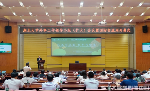 文明因交流而多彩,文明因互鑒而豐富。在第14個聯合國中文日到來之際,4月19日至22日,學校舉辦以“交流與互鑒,共享與融通”為主題的2023年國際交流周系列活動。19日上午,國際交流周開幕式在會議中心舉行,湖北大學外事工作領導小組(擴大)會議同時召開。校領導謝紅星、侯勇、王世敏、蔣濤、艾青松、李莉出席會議,相關職能部門負責人、各學院代表參加會議,會議由副校長蔣濤主持。