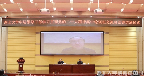 12月21日下午,湖北大學中層領導干部學習貫徹黨的二十大精神集中輪訓班交流總結暨結班儀式通過線上線下結合方式舉行。校黨委書記謝紅星作總結講話,校黨委常委、紀委書記、監察專員檀坤華主持會議。